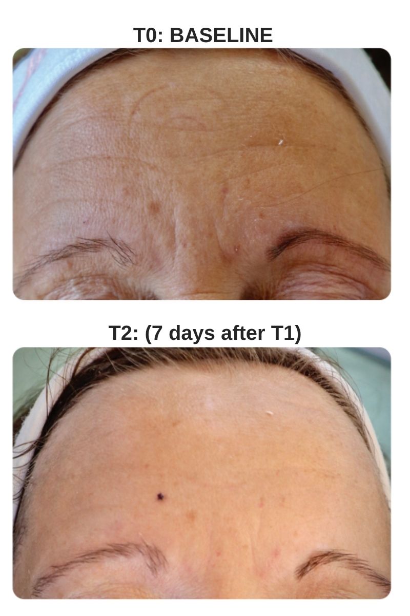 This treatment protocol demonstrates a powerful ability to visibly reduce wrinkles and restore skin vitality. After just two sessions over 7days, the patient showed a marked softening of static and expression lines, a smoother and more even skin texture, and an overall improvement in elasticity, and firmness. The results confirm that this approach provides a progressive rejuvenation effect, delivering both immediate and sustained aesthetic benefits, while ensuring patient comfort and no downtime.